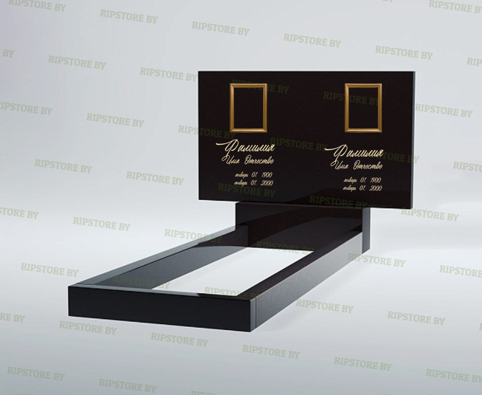 Двойной памятник B-0 сразу привлекает внимание строгой прямоугольной формой: на фото отчётливо видна массивная вертикальная плита, установленная на вытянутом основании. Гладкая полированная поверхность черного гранита подчеркивает солидность и элегантность композиции, а ровные линии придают памятнику лаконичный современный вид.