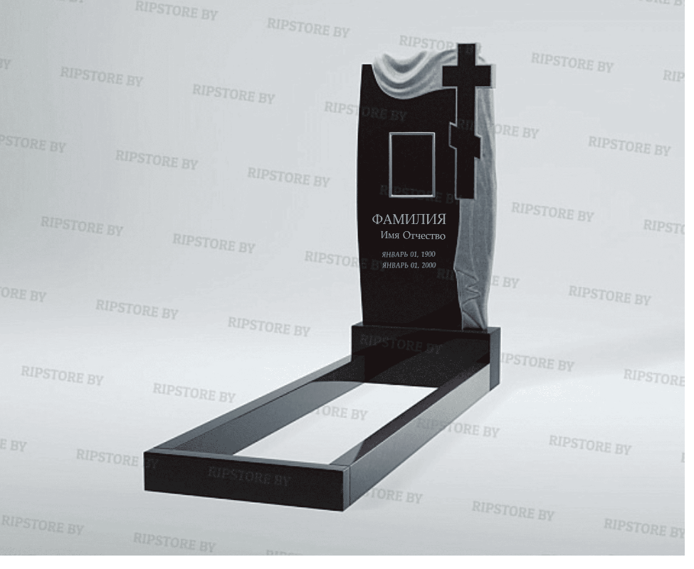Вертикальный памятник А-35C — это элегантный и выразительный мемориал, который сочетает символику и изысканность. Изделие украшено рельефным крестом и мягким контуром, напоминающим драпировку, что придает композиции особую глубину и утонченность. Такое решение подчеркивает духовность и уважение к памяти.