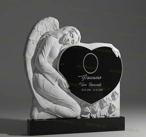 В скульптурном памятнике СС-26 выразительный образ скорбящего ангела олицетворяет глубокую привязанность и вечную память. Фигура преклонила колени, склонившись к сердцу из тёмного гранита. Этот контраст подчёркивает единство душевной боли и любви, которые не угасают даже с течением времени.